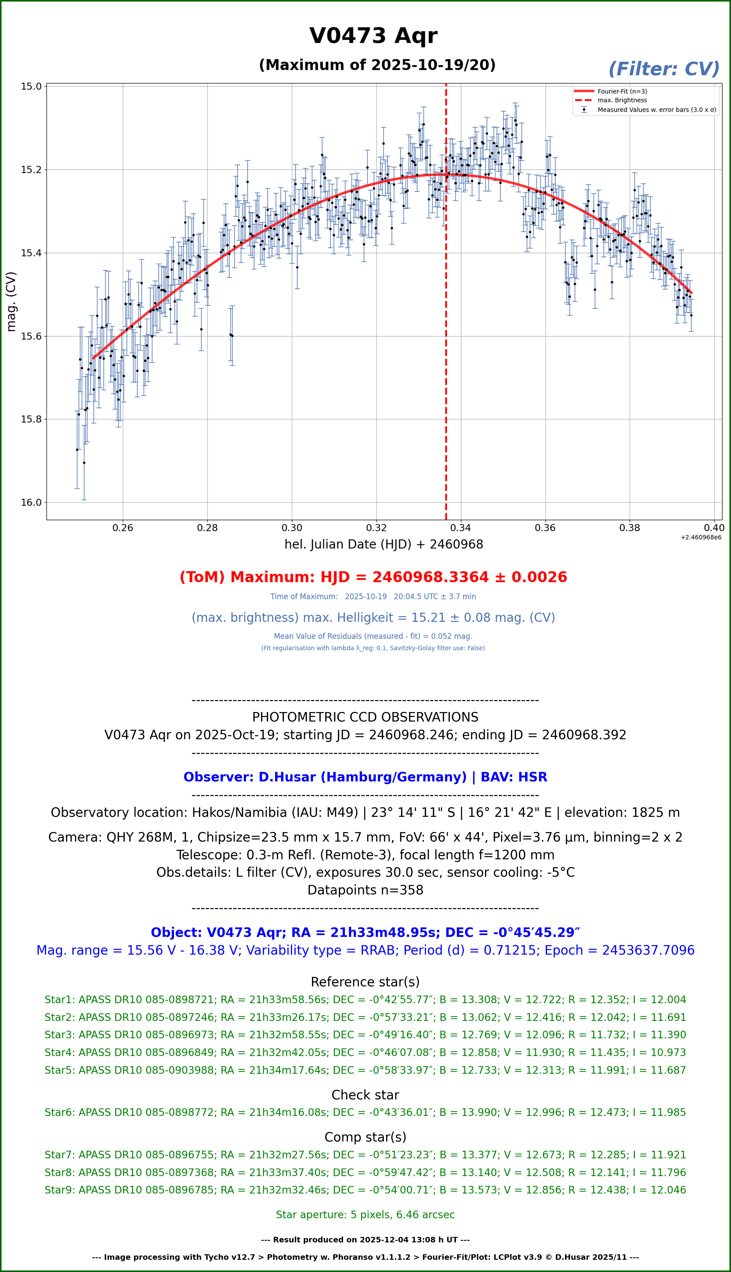 | 03.11.2025 | T CrB sollte nach mehreren Vorhersagen im Jahr 2024 ausbrechen. Die Beobachter warteten gespannt schon seit Ende 2023. Stand Anfang November 2025 ist T CrB noch im Normallicht. |